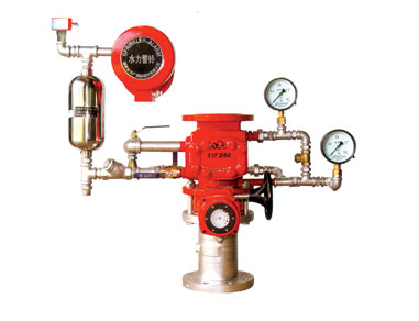 產(chǎn)品名稱:濕式報警閥 ZSFZ-80/100/150/200 額定工作壓力:1.2MPa 密封試驗壓力:2.4MPa 閥體強度試驗壓力:4.8MPa 工作原理: 當(dāng)自動噴淋滅火系統(tǒng)的保護區(qū)域內(nèi)發(fā)出火情時,火場環(huán)境溫度升高時,閉式噴頭上的玻璃球炸裂(或易融合金融化),噴頭打開噴水滅火。此時由于濕式報警閥出口側(cè)管網(wǎng)水壓下降,形成壓差,閥瓣組件打開,水源水不斷補充管網(wǎng)滅火,同時水流也經(jīng)密封環(huán)槽內(nèi)的孔流入延遲器,并迅速充滿,以一定水壓沖擊水力警鈴發(fā)出連續(xù)的報警聲,壓力開關(guān)動作接通電觸點,接通控制中心,以聲、光報警,同時啟動主供水泵進行消防滅火。